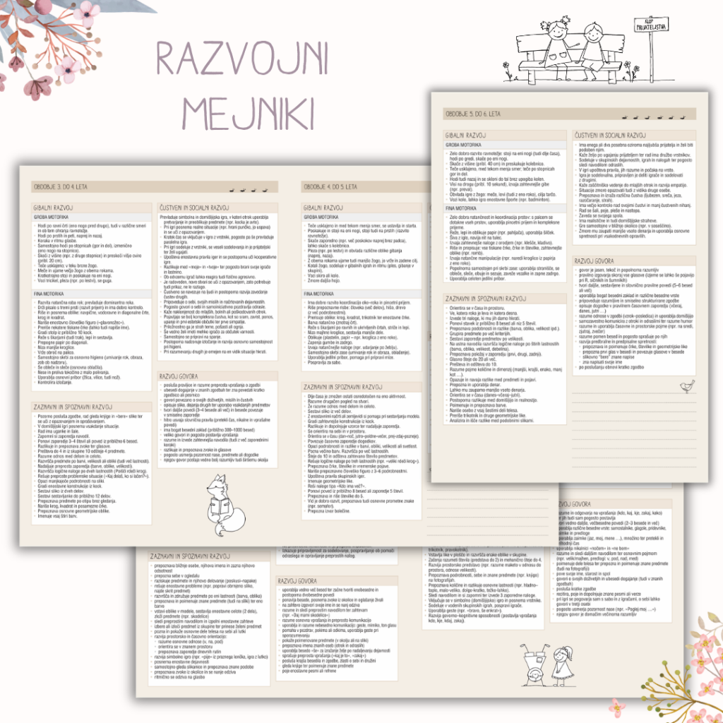 Letos so dodani posodobljeni RAZVOJNI MEJNIKI od 1.-6. leta starosti ter posodobljen KURIKULUM za vrtce (povzetki področij).