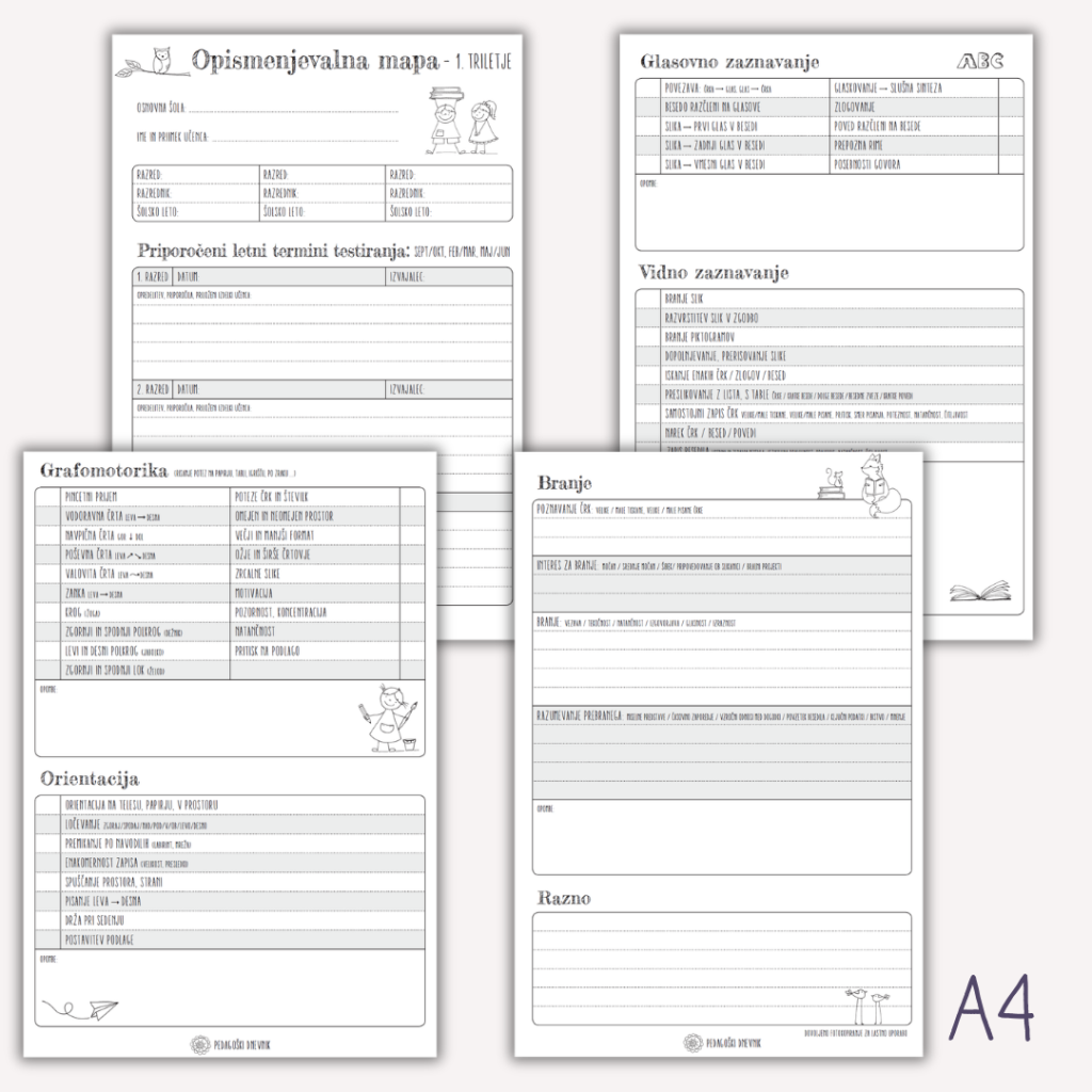 Mapa predstavlja povezovalni člen učiteljev 1. triletja, s pomočjo katere sistematično zbiramo opismenjevalne zmožnosti učencev. Več