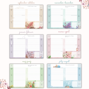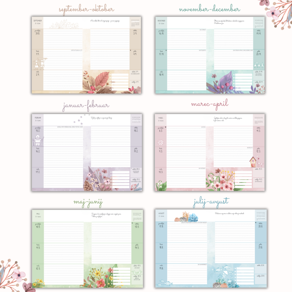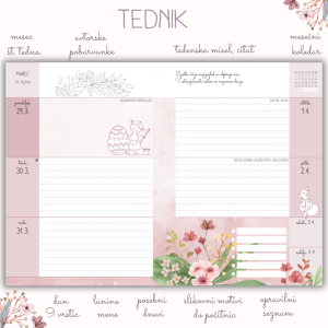 Cvetlični dnevnik s preglednim DVOSTRANSKIM TEDNIKOM in obsežnimi zapiski za odlično podporo pri organizaciji in preglednemu načrtovanju dela.